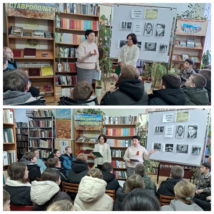 В клубе «Юный патриот» библиотека организовала урок мужества. Участники мероприятия узнали о подвиге Ивана Михайловича Гриценко, нашего земляка, участника Великой Отечественной войны и командира подводной лодки «Щ-204», которая затонула у берегов Болгарии. Также была представлена его биография. Сотрудники библиотеки рассказали, что 22 ноября 1941 года подводная лодка под командованием Гриценко отправилась из Туапсе в свой третий боевой поход, после чего она больше не вернулась на базу. Лодка была обнаружена только в 1983 году болгарским судном «Алка». Во время мероприятия библиотекарь познакомила детей с литературой по этой теме и прочитала рассказ из сборника «Опаленная земля» об отважном командире.