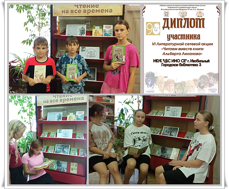 Библиотека присоединилась к VI Литературной сетевой акции «». Официальным руководителем акции является МКУК «Межпоселенческая ЦБС Георгиевского муниципального округа» Ставропольского края Незлобненская детская библиотека №7 им. А.А.Лиханова. В рамках акции в библиотеке работала выставка-юбилей и проходили громкие чтения. Надеемся, что книги А.А.Лиханова нашли отклик в сердце не только у подростков, но и у их родителей. За участие в акции городская библиотека №3 получила Благодарность и Диплом участника.