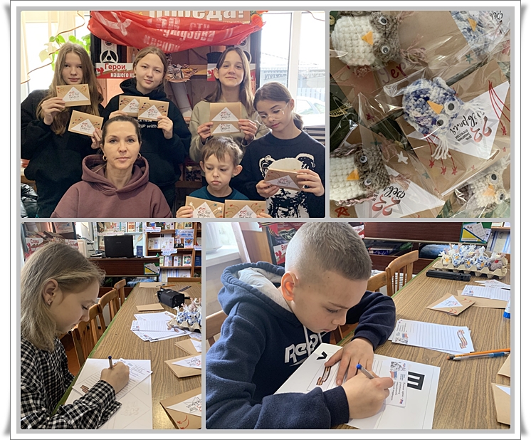 7 февраля читатели библиотеки приняли участие в тёплой инициативе — написали письма с поздравлениями в адрес защитников Родины, находящихся в зоне СВО, ко Дню защитника Отечества, отмечаемому 23 февраля. Заведующая библиотекой проявила особое внимание и заботу, связав очаровательных совят своими руками. Эти мягкие символы станут приятным дополнением к посланиям. Собранные письма и рукодельные сувениры передадут военнослужащим вместе с гуманитарной помощью, организуемой школой № 20 посёлка Новоизобильного.