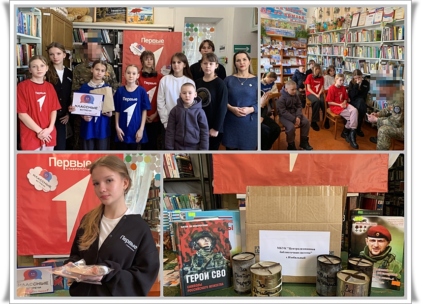 В библиотеке состоялась встреча с участником специальной военной операции Жилиным Дмитрием Владимировичем. Гость поделился с юными читателями историей своей службы, рассказал о боевых буднях и значении воинского долга. Особый интерес у ребят вызвали государственные награды, которых Дмитрий Владимирович был удостоен за личное мужество и отвагу. Кульминацией мероприятия стала передача гуманитарной помощи. Детьми были подготовлены письма с тёплыми пожеланиями и словами благодарности в адрес военнослужащих. Заведующая библиотекой Н. Ю. Рябцева передала для сослуживцев героя сувениры ручной работы — фигурки совят, призванные поднять боевой дух защитников. Директор МКУК «ЦБС ИМО СК» Н. А. Лигостаева вручила Дмитрию Владимировичу окопные свечи, изготовленные специально для нужд подразделения. Время горения каждой свечи составляет от 4 до 15 часов в зависимости от размера.