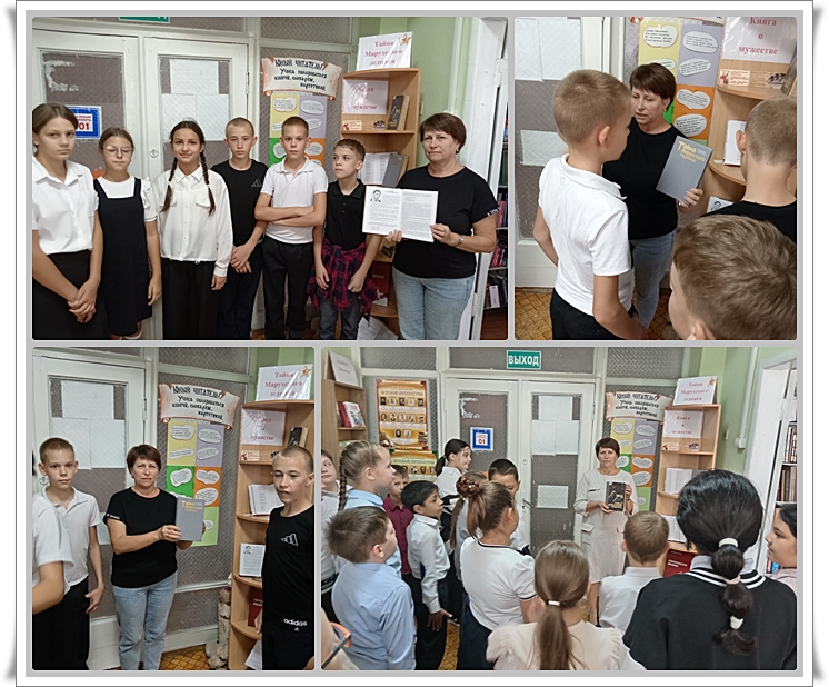 В библиотеке открыта выставка, посвященная одной книге. Эта книга повествует о героической обороне Марухского перевала в годы Великой Отечественной войны. Она рассказывает о мужестве и отваге советских воинов и командиров, которые не позволили фашистским войскам прорваться через Кавказский хребет. Книга основана на документальных фактах и описывает события такими, какими они были на самом деле. Сотрудники библиотеки через свои выставки, беседы и часы мужества стремятся передать уважение и восхищение подвигом своих земляков.
