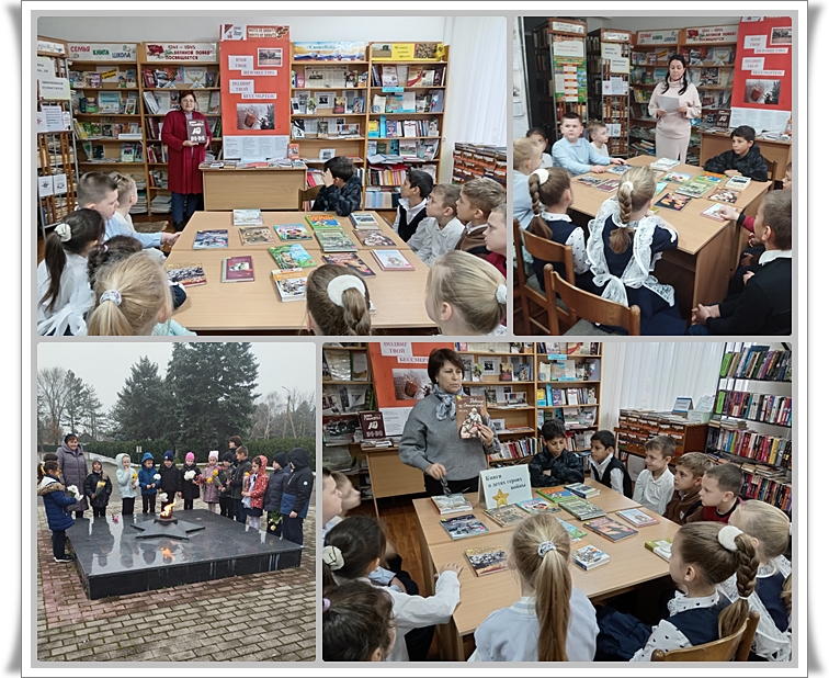 В рамках работы клуба «Патриот» библиотека организовала и провела час памяти и мужества для своих читателей. Мы рассказали ребятам о тяжёлых временах оккупации Ставропольского края. Были показаны фотографии и статьи о подвигах наших земляков, сражавшихся на фронте. Участники мероприятия познакомились с «Книгой памяти» села Птичьего и узнали о содержании всех томов энциклопедии, посвящённой Великой Отечественной войне. Также мы рассказали о тех, кто трудился в тылу. С большим интересом ребята изучили книжную выставку «Ставропольские писатели о Великой Отечественной войне».