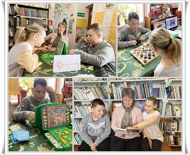 В Международный день без интернета библиотека превратилась в игровую площадку. Настольные игры объединили людей всех возрастов. Каждый нашел что-то интересное: морской бой, шашки, карточная игра «Вирус» или головоломки. Читатели наслаждались классическими произведениями, слушая их вслух. Вера Анатольевна Васильева, председатель клуба «Академия серебряного возраста», участвовала в этом мероприятии.