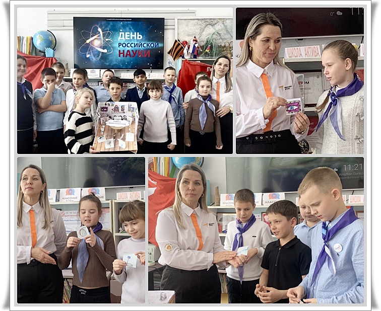 В библиотеке состоялся устный журнал, посвящённый Дню российской науки. Мероприятие было посвящено выдающимся открытиям и достижениям отечественных учёных. Читателям были представлены обзоры книг «100 великих нобелевских лауреатов» и «100 великих россиян». Кроме того, они смогли увидеть документальный фильм о жизни и деятельности Дмитрия Ивановича Менделеева, а также поучаствовать в викторине, составленной на основе материалов, прозвучавших на встрече. Завершилось мероприятие химическим опытом «Вулкан», который провела преподаватель химии Тулаева С. А.