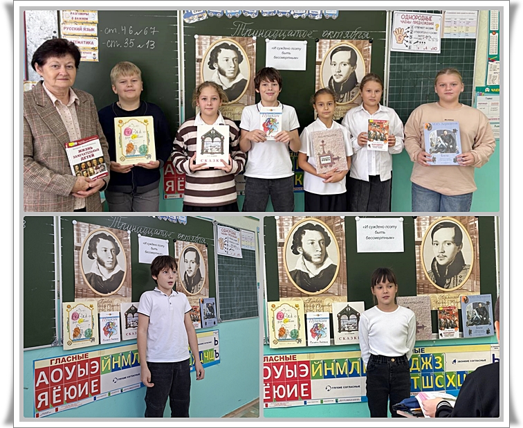 Очередное заседание клуба «Хочу всё знать!» прошло в библиотеке. На этот раз темой поэтического часа стали великие русские поэты — Александр Сергеевич Пушкин и Михаил Юрьевич Лермонтов. Ребята тщательно готовились к встрече: изучали биографии, читали произведения, учили стихи. Они активно участвовали в обсуждении. Для них некоторые факты из рассказа библиотекаря о детстве Пушкина и Лермонтова оказались неожиданными. Особенно их заинтересовал рассказ о годах обучения Пушкина в Царскосельском лицее и история о гувернёре-французе маленького Лермонтова.