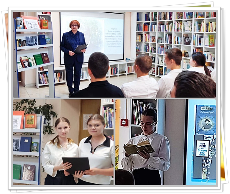 Под таким названием прошел литературно-музыкальный час, посвященный творчеству великого русского поэта Сергея Александровича Есенина, с читателями библиотеки. Мероприятие позволило погрузиться в удивительный мир поэзии, в котором переплелись краски родной природы, музыка слова и исповедальная искренность. На мероприятии звучали бессмертные строки стихотворений о «милых берёзках», «золотом закате» и, конечно же, о матери. Особую пронзительность литературно-музыкальному часу придали песни, написанные на стихи поэта, в том числе такие известные, как «Клён ты мой опавший» и «Отговорила роща золотая». «Моя лирика жива одной большой любовью к Родине. Чувство Родины — основное в моем творчестве», — эти слова самого Есенина стали лейтмотивом всего литературного часа, заронив в души читателей семя любви к настоящей поэзии.