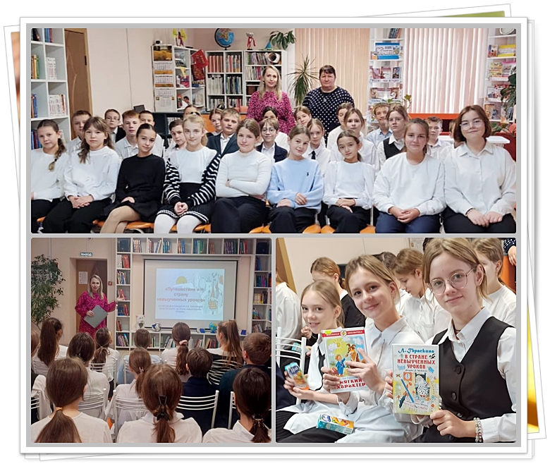 В библиотеке состоялась встреча с удивительной книгой. Если вы думаете, что учебники могут быть скучными, а уроки — унылыми, то эта история кардинально изменит ваше мнение! Речь идет о повести Лии Гераскиной «В стране невыученных уроков». Вместе с двоечником Витей Перестукиным и его верным котом Кузей ребята отправились в волшебную страну, где живут ошибки: неправильно решенные задачи, невыученные правила и даже запятые, которые забыли поставить. Участники мероприятия встретились с вредным Корнем из Уравнения, капризными Глаголами, голодной коровой-плоскогубкой и многими другими невероятными жителями. «В стране невыученных уроков» — это не просто сказка. Это настоящее приключение, полное опасностей и открытий, которое заканчивается очень важным выводом: учиться — это не скучно, а необходимо!