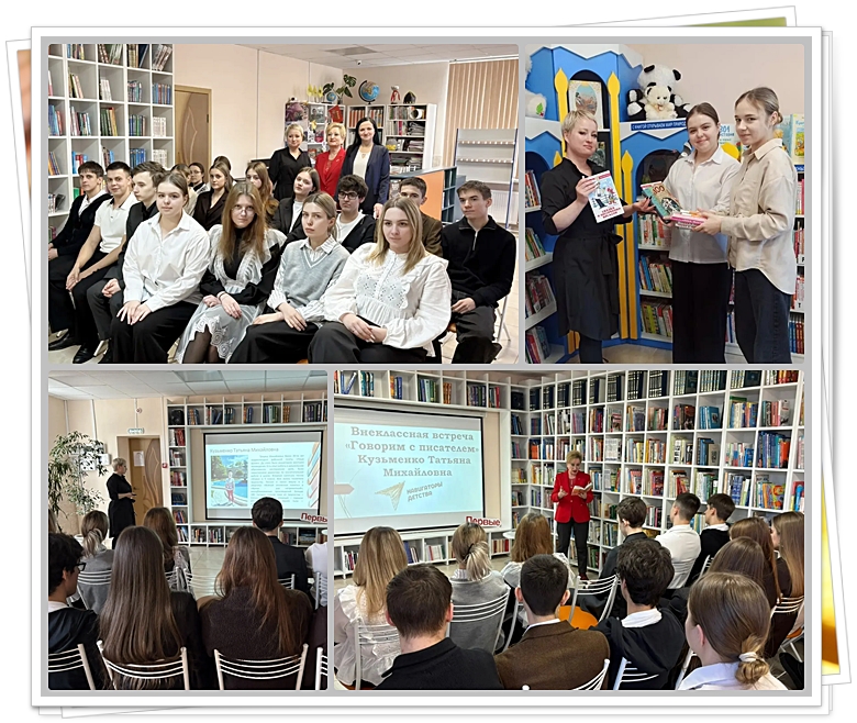 В библиотеке прошла творческая встреча читателей с корреспондентом районной газеты «Наше время» Татьяной Кузьменко. Мероприятие состоялось в рамках Всероссийского проекта «Классные встречи» и десятой общероссийской акции «Дарите книги с любовью». Татьяна Михайловна поделилась своими творческими успехами. Она рассказала, что её первым поэтическим опытом стала песня «Мама», которую она написала в пятом классе. Сейчас в её творческом багаже более ста стихотворений и множество песен, которые исполняются местными хоровыми коллективами и её внучкой Агатой Гридиной. Некоторые стихи Татьяны Кузьменко вошли в сборники «Войной опалённая память» и «Время — дар неприметный». Её проникновенное чтение никого не оставило равнодушным. В конце встречи ученики подарили библиотеке книги с произведениями детских писателей.