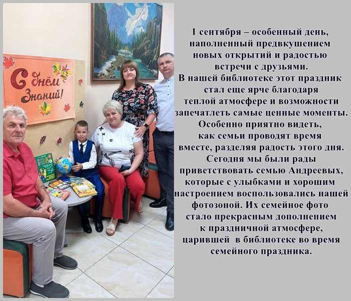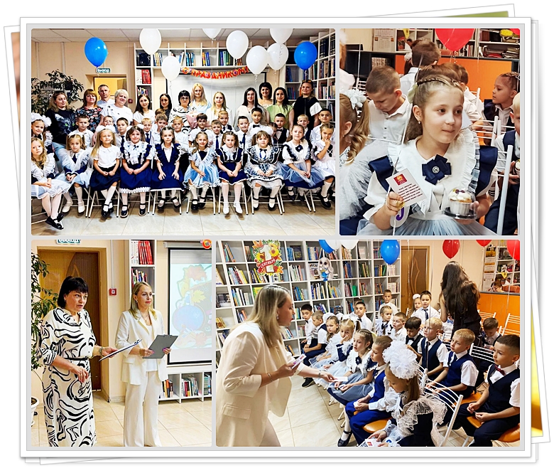 День знаний для наших первоклассников стал ярким, волнующим и радостным событием. С самого начала детей окутала теплая и дружелюбная атмосфера. Программа была насыщенной и интересной: ребята читали стихи о школе, пели песни о дружбе и учебе, с удовольствием танцевали, даря всем вокруг свою энергию и позитив. Особое восхищение вызвали викторины и игры, которые позволили детям проявить свою эрудицию и смекалку. Они с легкостью отвечали на вопросы о сказках, школьных предметах и правилах поведения. Этот день напомнил нам, что современная библиотека — это место, где радость рождается от первого прочитанного слова, где знакомство с знаниями превращается в увлекательное приключение, а каждый ребенок чувствует себя желанным и важным гостем. Мы искренне желаем нашим первоклассникам легкой и интересной дороги в страну знаний! С нетерпением ждем встречи с вами и вашими родителями, чтобы вместе отправиться в увлекательное путешествие по миру школьных книг!